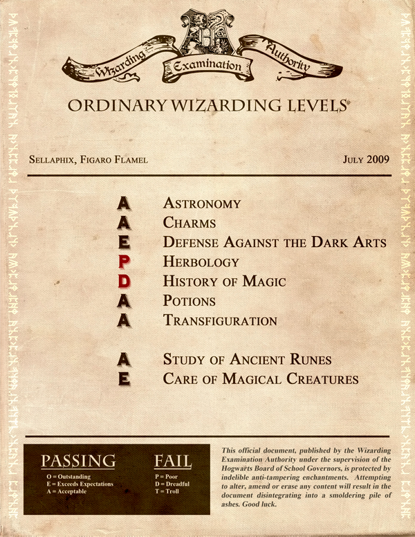 Figaro was not a top student, and his efforts faded as the years have gone by. School's got more challenging and more autonomy was expected. He persisted at Ancient Runes despite some very near misses, but eventually dropped it. unfortunately he ended up not achieving strong enough O.W.L.s in Herbology and History of Magic to continue in those either. He seems to get by on the insistence of his Professors and befriending more studious students.
