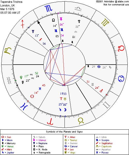 Re: Tapendra Trishna: Astronomy Professor Reply #2 on October 23, 2010, 06:50:16 PM Zodiac InformationPICSESIn the scheme of astrology each of the zodiac signs supposedly indicates the level of evolution beginning with Aries and finishing with your sign, Pisces. There’s no doubt that the water signs, Pisces being the final and most mature of them, indicates your spiritually developed character. The ruling symbol of your star sign is the fish and just as the fish lives in the ocean, so to is Pisces suffused with feeling and empathy, the emotions that are characterized by water. You truly are a compassionate and unconditionally loving person. You have a universal approach to the way you live and this is seen in most of your actions. Whenever you see someone suffering, or in some type of trouble, it touches your heart and you can’t help but offer your assistance. Your heart goes out to them. Even if you’re in a hurry, busy doing something else, you’ll take time out of your busy day to lend a helping hand where you can. It is second nature for you to care.Your friends know you to be a person upon whose shoulders they can rest their weary and heavy heads in times of stress. They look to you when they feel they need to offload their problems. You’re always there to help reassure and calm them. One of the difficulties with your sensitive nature is that you avoid making hard decisions at times, especially if you feel this is going to undermine someone else. With close friends and family members you’ll do anything to help them but don’t forget you must also help yourself. Some Pisces are so habituated to this attitude that they themselves end up becoming the sacrificial lamb in their relationships. You should try to recognise when you’re being used as no one gains from this. Balancing your needs and those of others is a particularly important lesson for you.Because you’re an intuitive person you don’t always like to think your problems through. Using your emotions and your deeper intuitive powers is the way you prefer to resolve your life problems, even if others don’t quite see the sense in it. Pisces, you are somewhat of a daydreamer aren’t you? Nevertheless your instincts are powerful and more often than not correct. Your ability to foresee things before it actually happens is quite uncanny. I’ve known many Pisceans who become psychics and clairvoyant as they have the ability to act as mediums. Remember though that intuition can only go so far. Learn to develop your thinking processes as well as your intuitive feelings.You have an instinctive understanding that there’s a unifying thread throughout all of life. You see this sometimes more clearly than you see the real world. As a result, you can tap into the universal consciousness and produce wonderful works of art and music. You should allow yourself the opportunity to express your vision of life. Culture is important to you ands you love to surround your self with artwork, music poetry and fine furnishings.You’re a very emotional person so you need the support of people to allow you to express this. Sometimes because you’re so hypersensitive it works against you and you end up absorbing the negativity of people around you. You mustn’t let others drag you down into their world of bad feelings.You’re idealistic about the way you see the world and unfortunately what you see is not in keeping with your aspiration. You have to learn to accept the world with all its faults. Sometimes you’re out of step with the world around you so be careful not to end up living in a world of your own making. You need loving friends to help your feet carefully planted on the ground so your creative dream weaving doesn’t make you impractical. You’re gentle, impressionable and receptive. You want to share your emotions and are also happy to receive the demonstrative love of others. You try to hide just how sensitive you are and if someone insults you tend to suppress these feelings and can become depressed. You mustn’t be afraid to speak up even if you do upset or anger someone by doing so. You enjoy your own company and are quite satisfied to potter around in a quiet way and enjoy what nature and life have to offer. You’re equally comfortable in a social environment. Sometimes you do feel isolated and a little disconnected from life. This makes you feel dispassionate even if you do seem to be enjoying what is going on. Because you are an observer of human nature you are philosophical and realise that nothing lasts forever. If, for example, in relationships you have to let go of someone, then so be it. You understand that all good things must pass. Your destiny is primarily connected to wisdom, self-knowledge and compassionate service to the world. You must be free to live your life on these terms and if you’re able to do so you’ll become much more secure within yourself and at the same time can bring great satisfaction to those who are lucky enough to come into contact with you.Rising Sign is in 00 Degrees AquariusYou like new ideas and concepts, but you prefer to discover them by yourself -- it is not easy for others to convert you to anything. You form your own opinions, but once you do form them, you then want to convince everyone else that they are correct. Try to be more tolerant of the opinions of others. You have a deep and abiding interest in science, mathematics, and the great social problems of the day. Very sympathetic toward the downtrodden, equality is your battle cry! You demand that those in authority be fair to all. You are an intellectual -- emotions and emotional people are difficult for you to understand. You are known for being calm, cool, detached and objective. Sun is in 14 Degrees Pisces.Extremely sensitive and emotional, you absorb the emotions of others (whether positive or negative) like a sponge. Emotionally vulnerable, you are easily upset and tend to cry readily. You are at your best whe